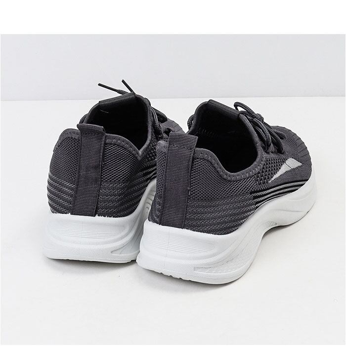 ・シックなモノトーンのアッパー生地に、疾風のようなラインを配置したスタイリッシュなデザイン。お気に入りのフィットネスウェアに合わせてコーディネート自在!