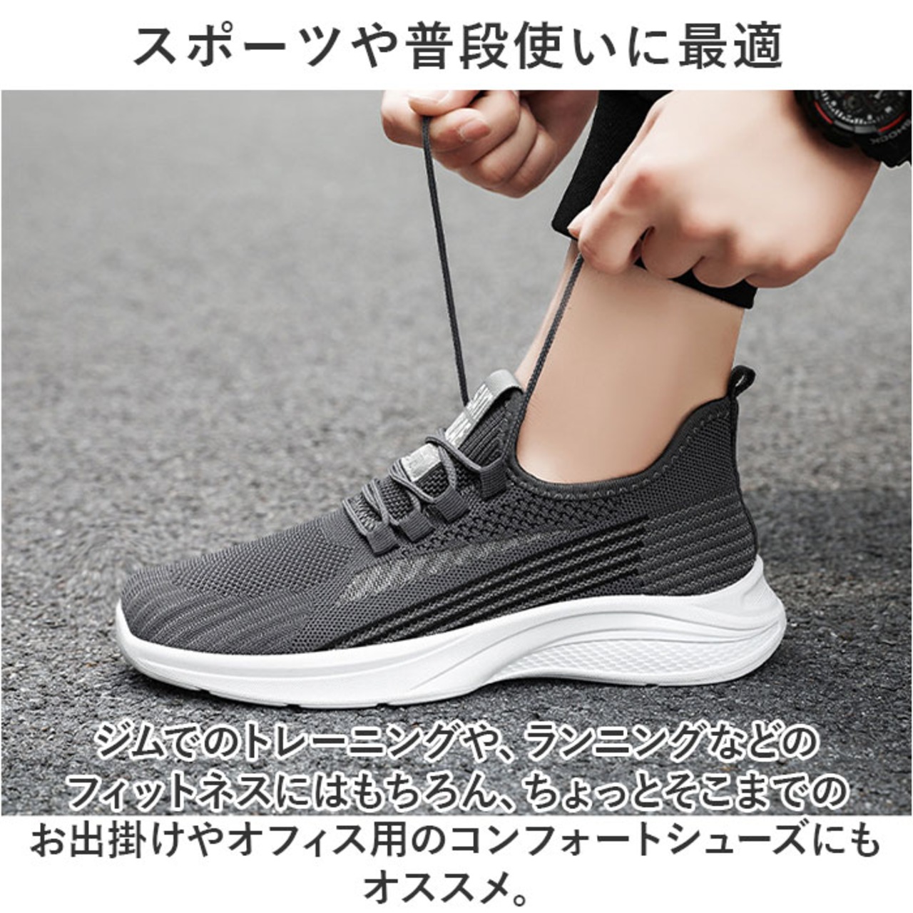 ・ジムでのトレーニングや、ランニングなどのフィットネスにはもちろん、ちょっとそこまでのお出掛けやオフィス用のコンフォートシューズにもオススメ。