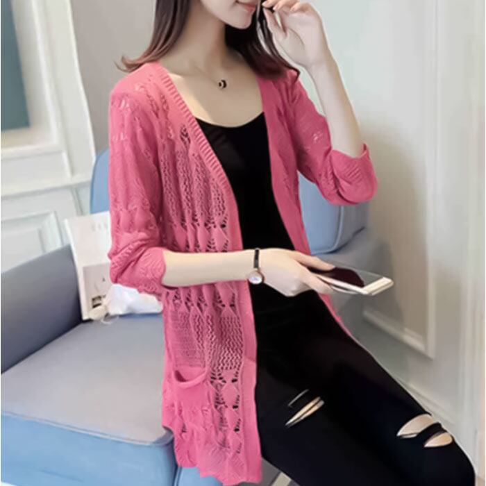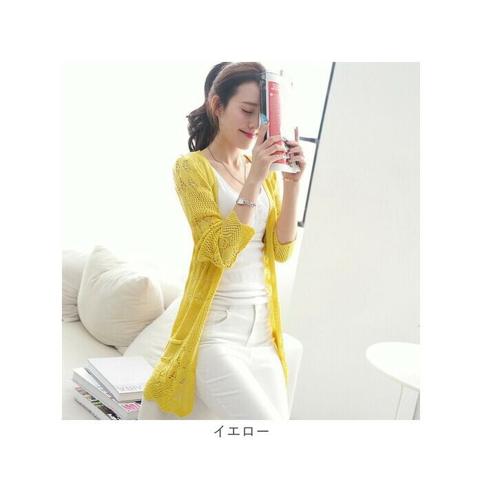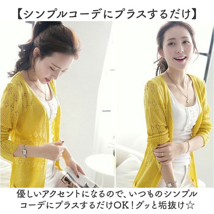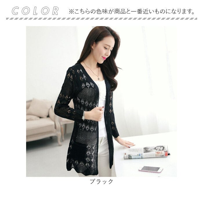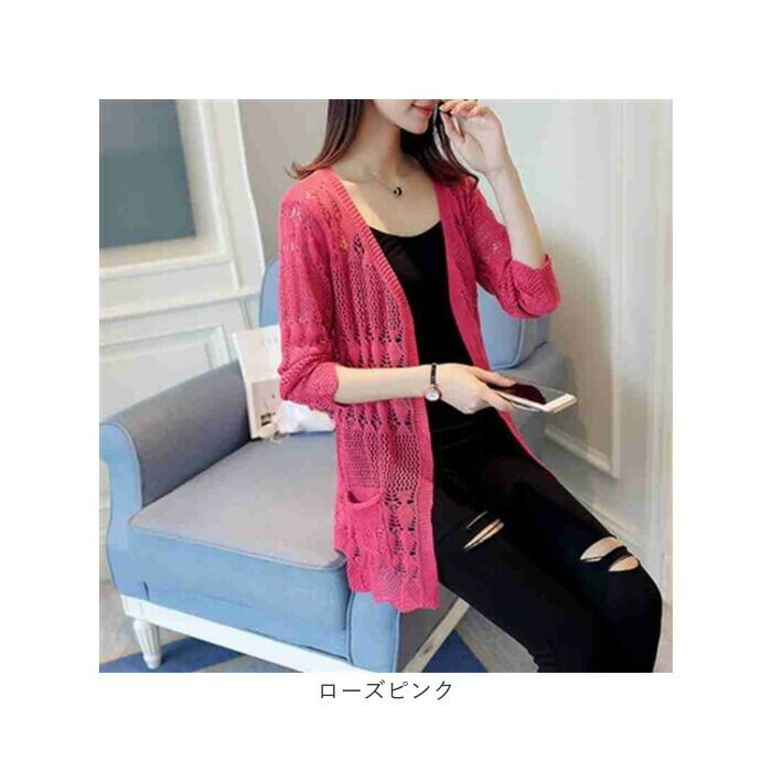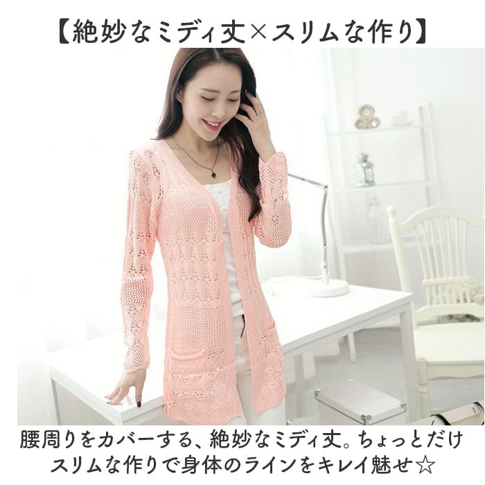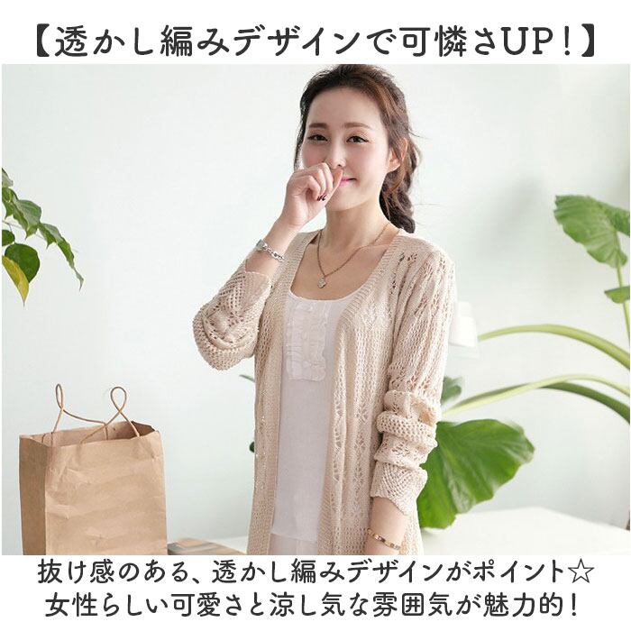 カーディガン レディース 通販 レース 透かし編みカーディガン 長袖 ミディアム丈 サマーニット セーターカーディガン 綿 コットン 薄手ニット ロングニット トップス 羽織り UV対策 紫外線対策 かわいい ゆったり シンプル 日焼け対策