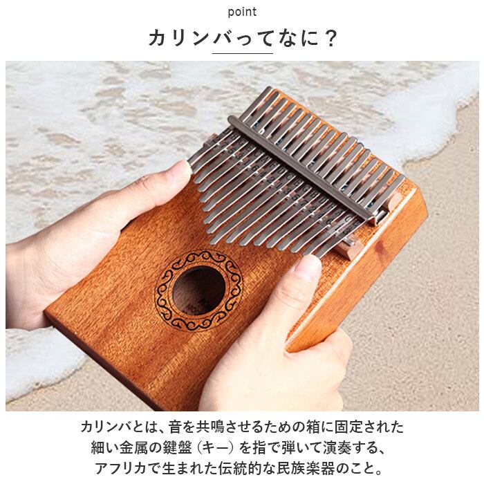・カリンバとは、音を共鳴させるための箱に固定された細い金属の鍵盤(キー)を指で弾いて演奏する、アフリカで生まれた伝統的な民族楽器のこと。