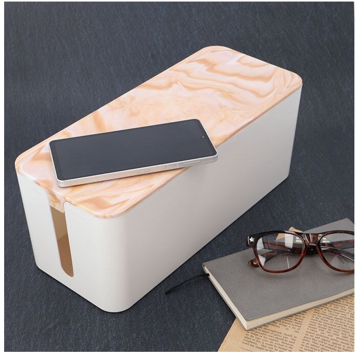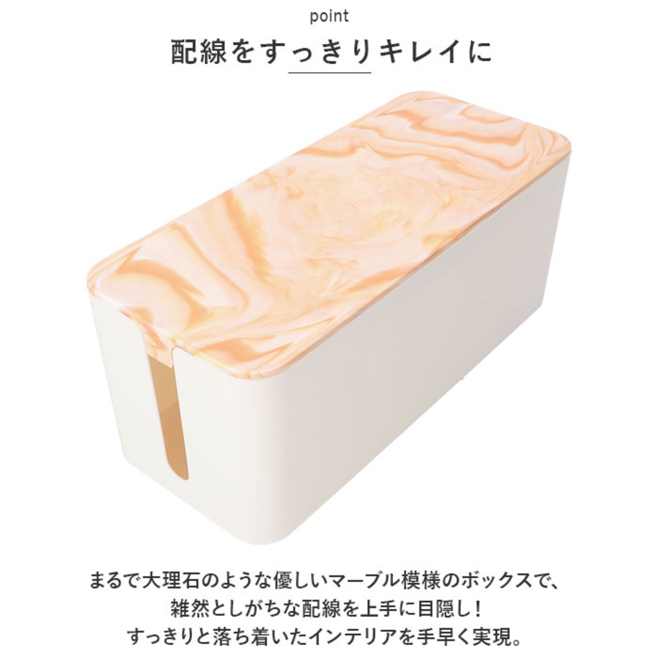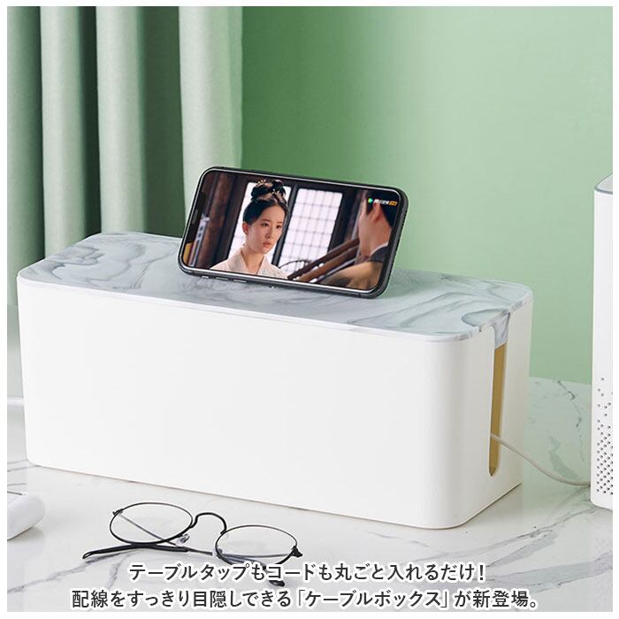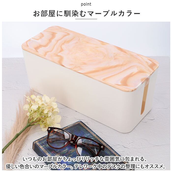 ・まるで大理石のような優しいマーブル模様のボックスで、雑然としがちな配線を上手に目隠し!すっきりと落ち着いたインテリアを手早く実現。