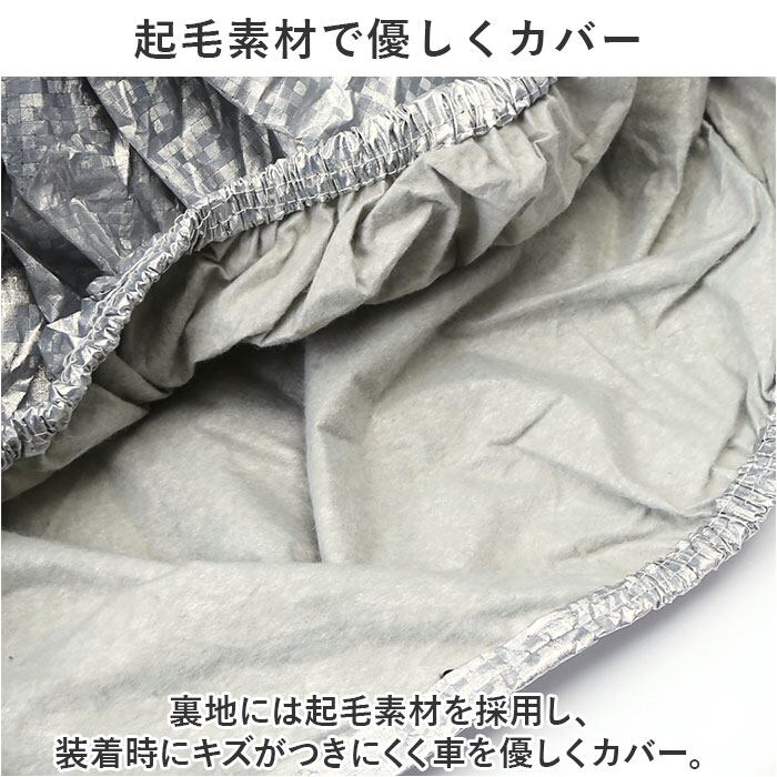 ・裏地には起毛素材を採用し、装着時にキズがつきにくく車を優しくカバー。