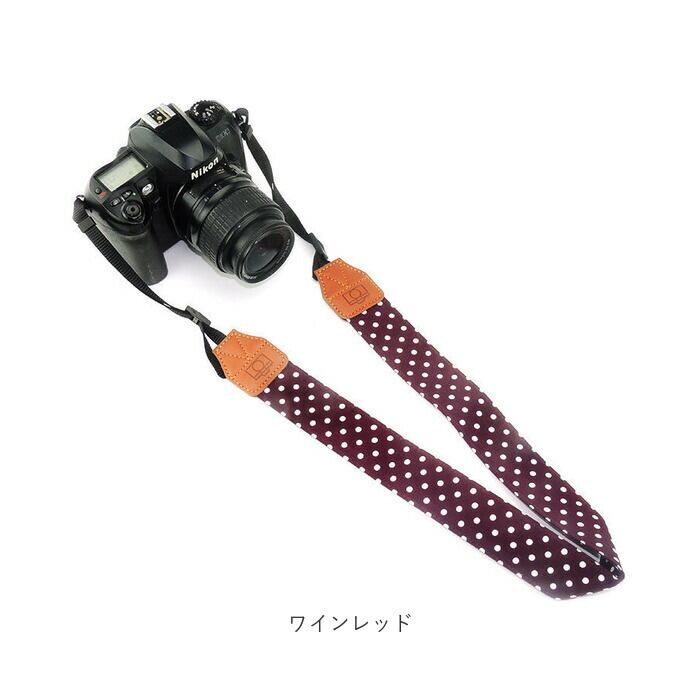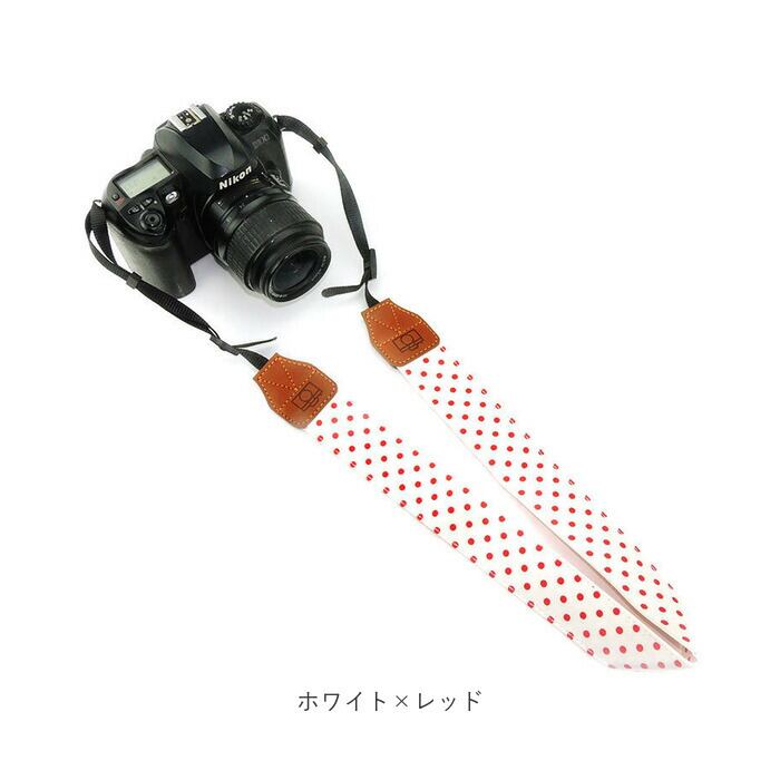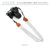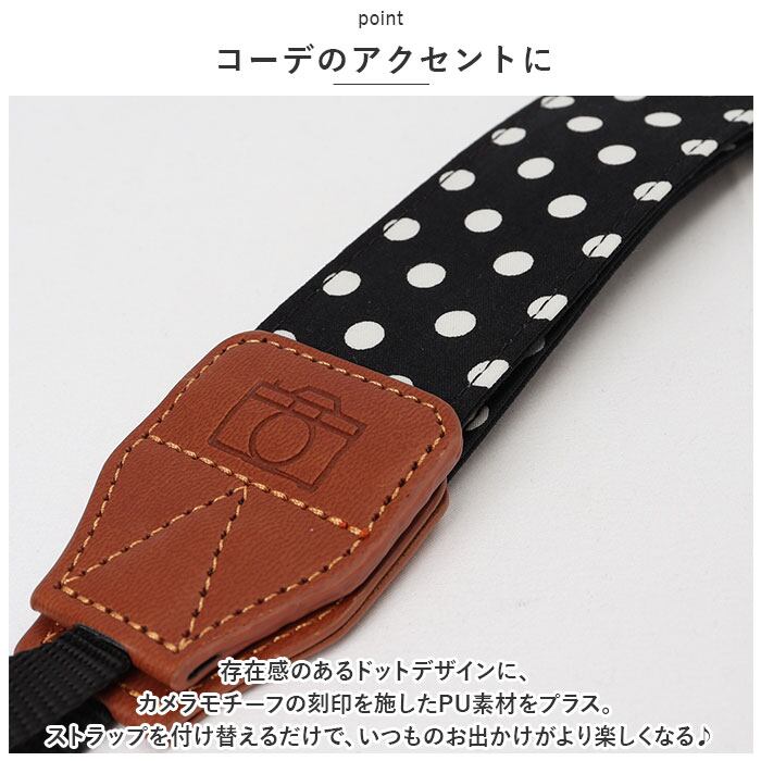 ・存在感のあるドットデザインに、カメラモチーフの刻印を施したPU素材をプラス。ストラップを付け替えるだけで、いつものお出かけがより楽しくなる♪
