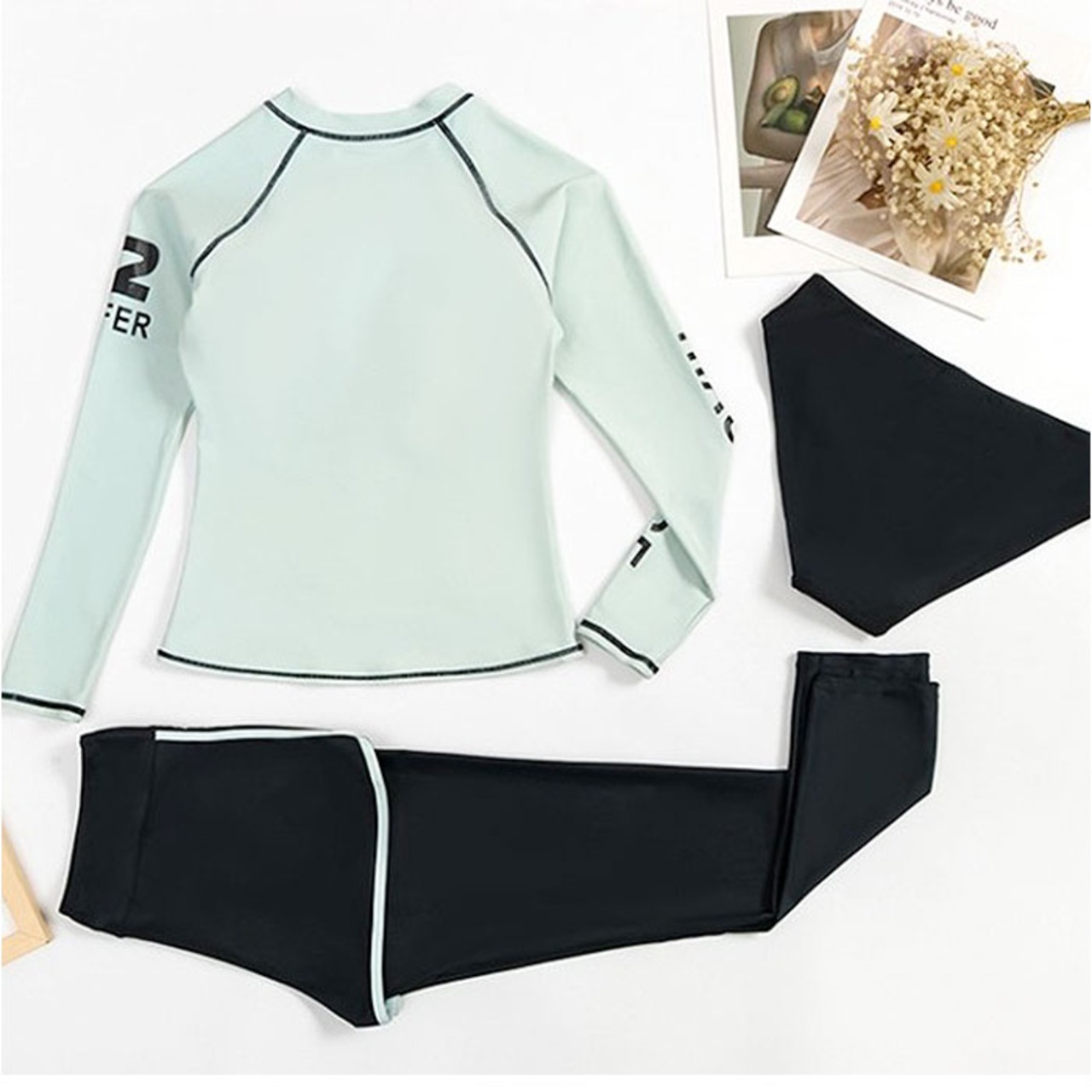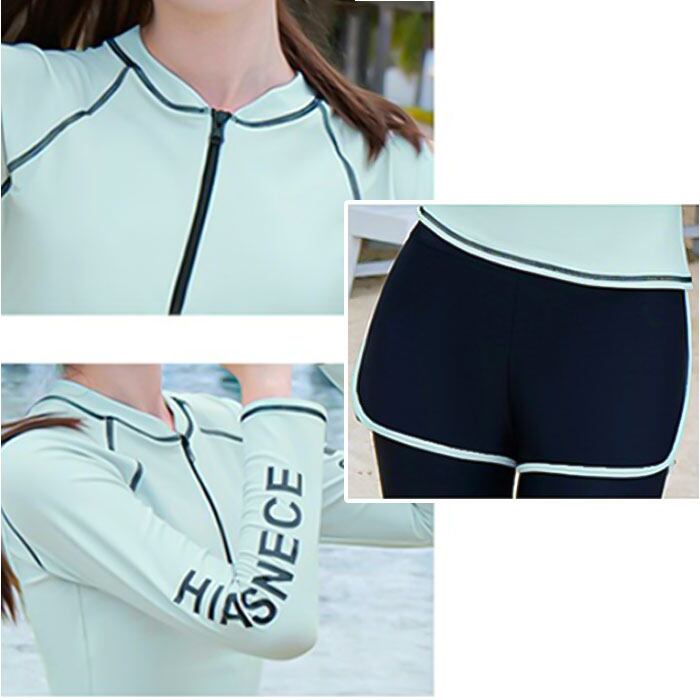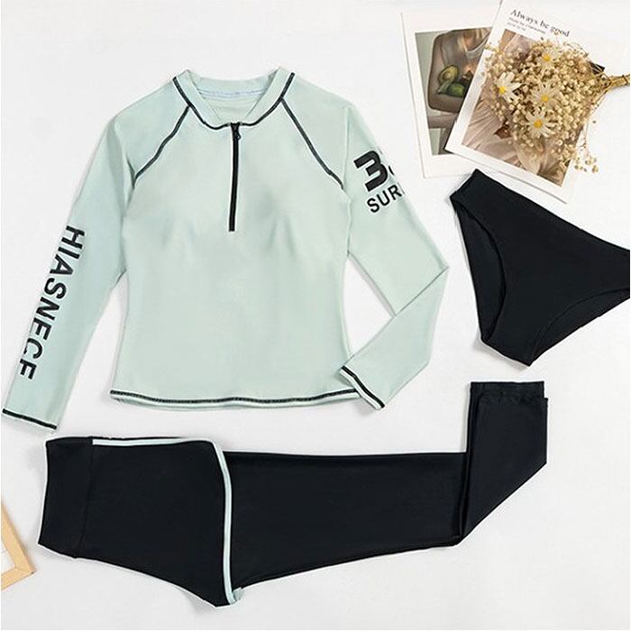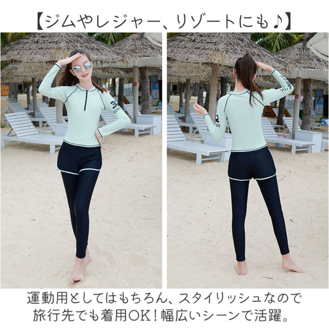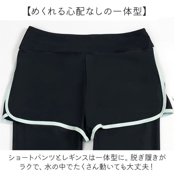 ・二の腕や太ももをカバーする、露出の少なさがポイント。日焼け対策や水冷え防止にもお役立ち♪