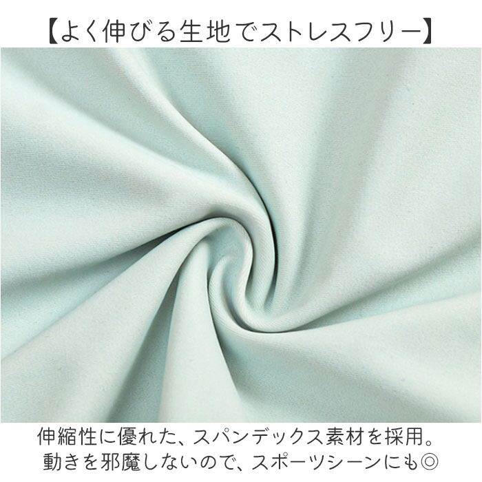 ・伸縮性に優れた、スパンデックス素材を採用。動きを邪魔しないので、スポーツシーンにも◎