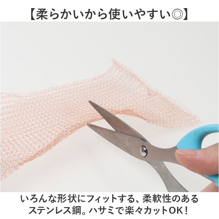 ・いろんな形状にフィットする、柔軟性のあるステンレス鋼。ハサミで楽々カットOK!