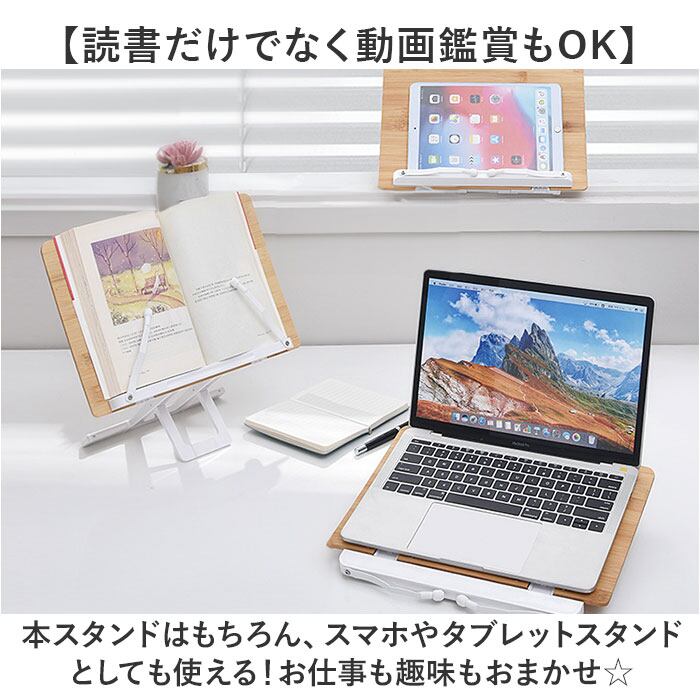 ・本スタンドはもちろん、スマホやタブレットスタンドとしても使える!お仕事も趣味もおまかせ☆
