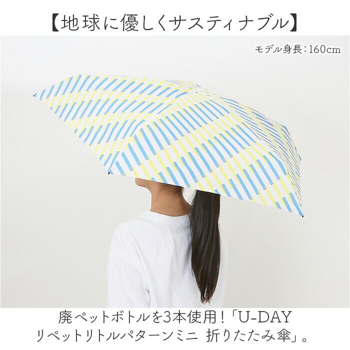 ・廃ペットボトルを3本使用!「U-DAY リペットリトルパターンミニ 折りたたみ傘」。