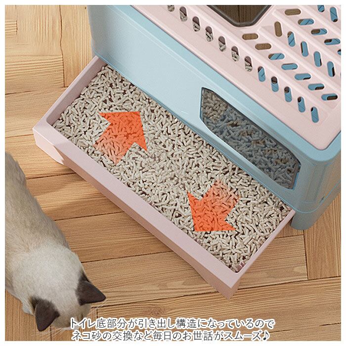 ・トイレ底部分が引き出し構造になっているので、かがみこんだり、トイレの奥まで手を伸ばす手間がなく、ネコ砂の交換など毎日のお世話がスムーズ♪
