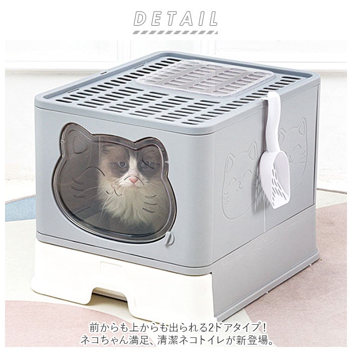 ・前からも上からも出られる2ドアタイプ!ネコちゃん満足、清潔ネコトイレが新登場。