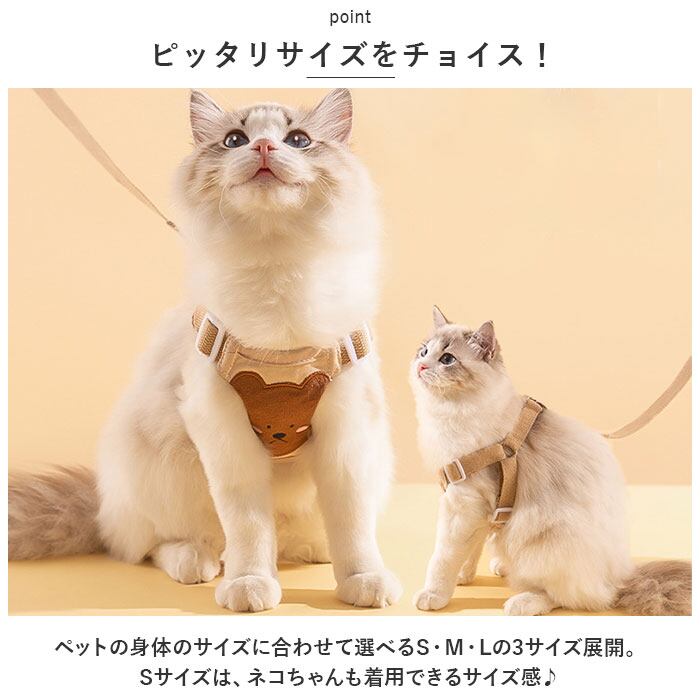・ペットの身体のサイズに合わせて選べるS・M・Lの3サイズ展開。Sサイズは、ネコちゃんも着用できるサイズ感♪