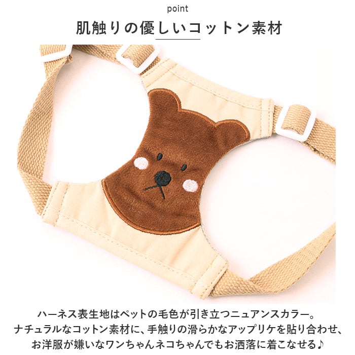 ・可愛らしいクマさん&ライオンのアップリケがアクセント。ペット用ハーネス&リードセットが新登場。