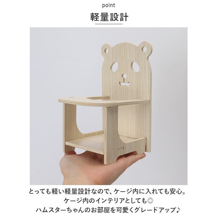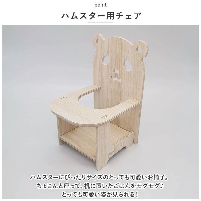 ・ハムスターにぴったりサイズのとっても可愛いお椅子。ちょこんと座って、机に置いたごはんをモグモグ♪とっても可愛い姿が見られる!