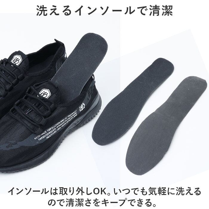 ・メッシュ素材を使用し、抜群の通気性を実現!ムレにくく快適な靴内をキープできる仕様。