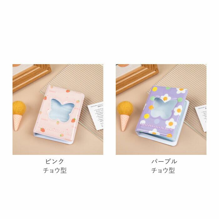 ・表紙のハート型やチョウ型のクリア窓デザインがキュート♪内側からお気に入りの写真やカードを入れたりデコレーションすれば、自分だけのオリジナルアルバムに!