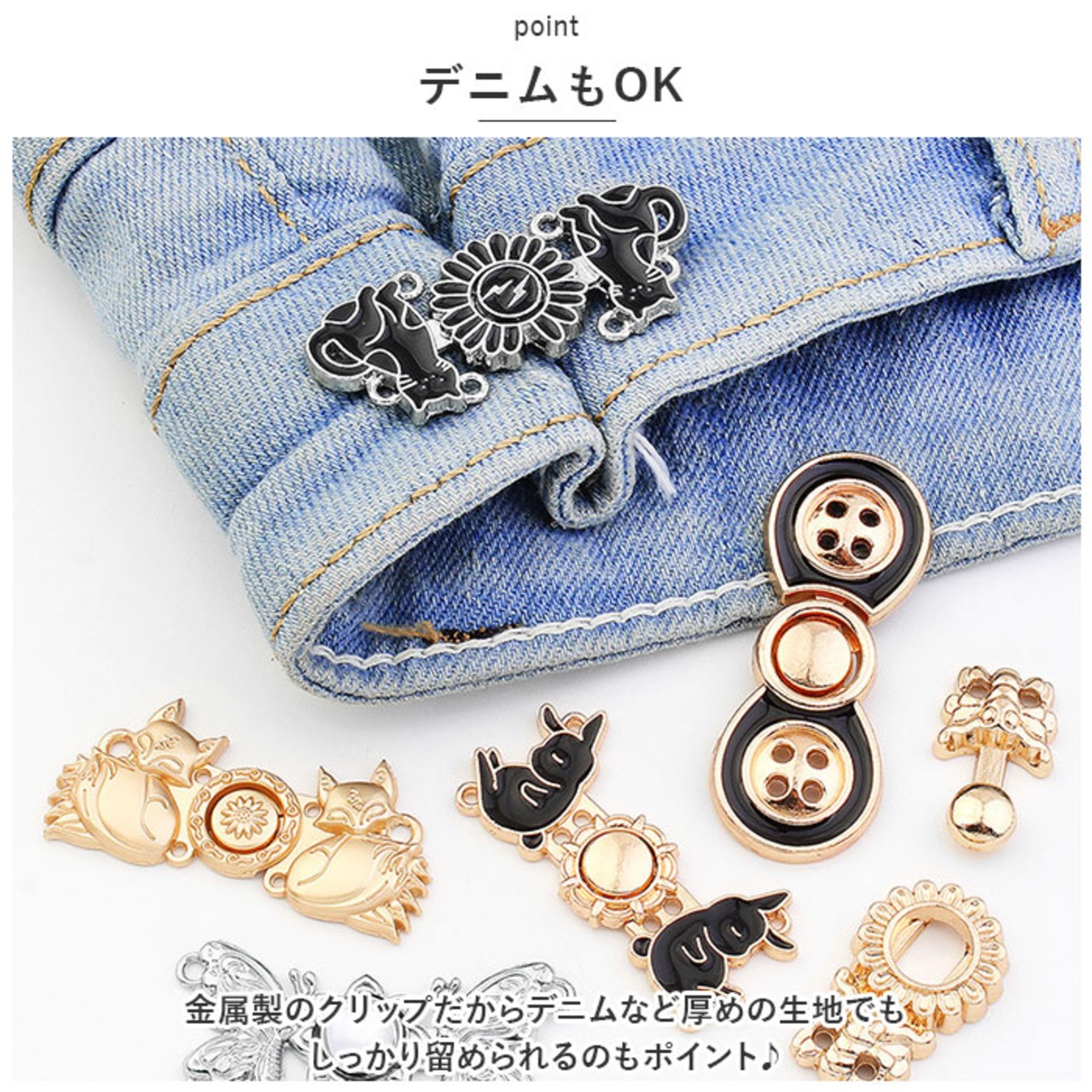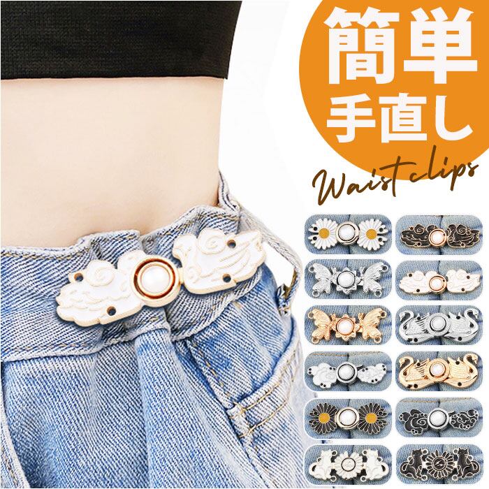 ウエスト 調整 クリップ 通販 調節クリップ ウエスト調整 サイズ調整 ウェスト 調整金具 ズボン パンツ ジーンズ デニム 大人 子ども 子供 女の子 セルフ お直し ウエストクリッパー スカート ボタン シャツ ブラウス