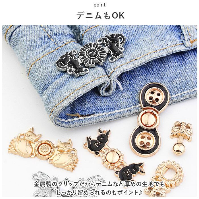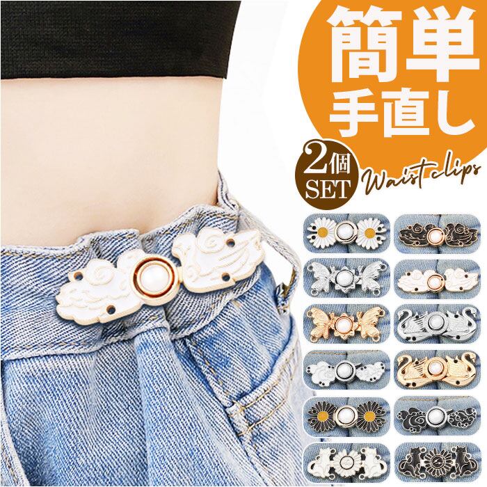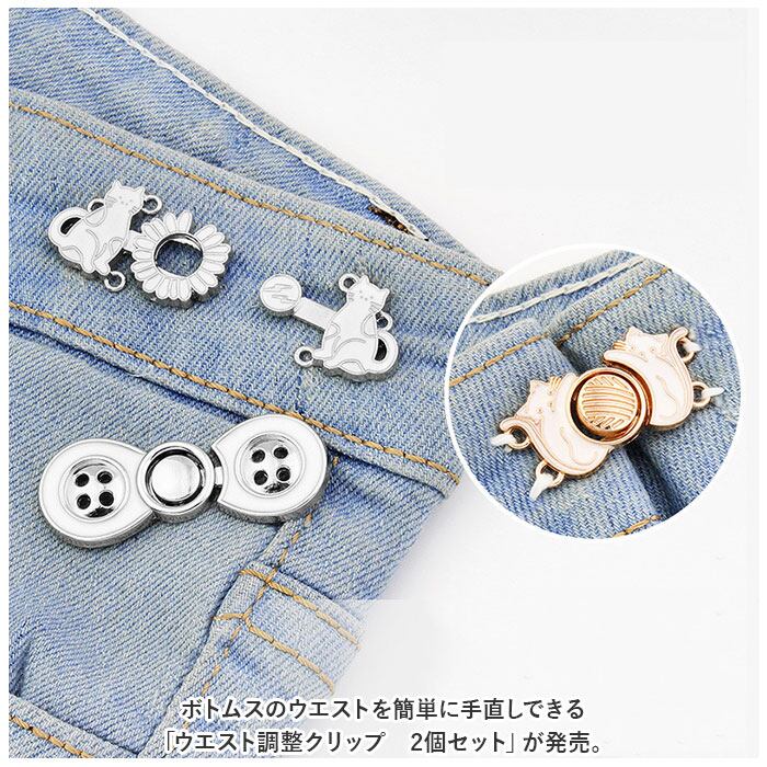 ウエスト 調整 クリップ 2個セット 通販 調節クリップ ウエスト調整 サイズ調整 ウェスト 調整金具 ジーンズ デニム ズボン パンツ 女の子 2組セット 二個 大人 子ども セルフ お直し ウエストクリッパー スカート ボタン シャツ ブラウス