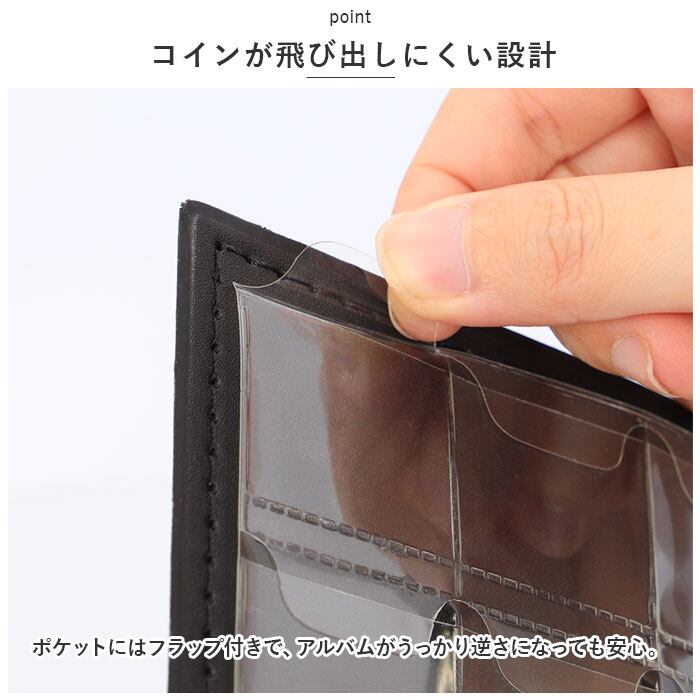 ・500円玉サイズのポケットに1ページ12枚、合計120枚のコインを収納できるアルバム。