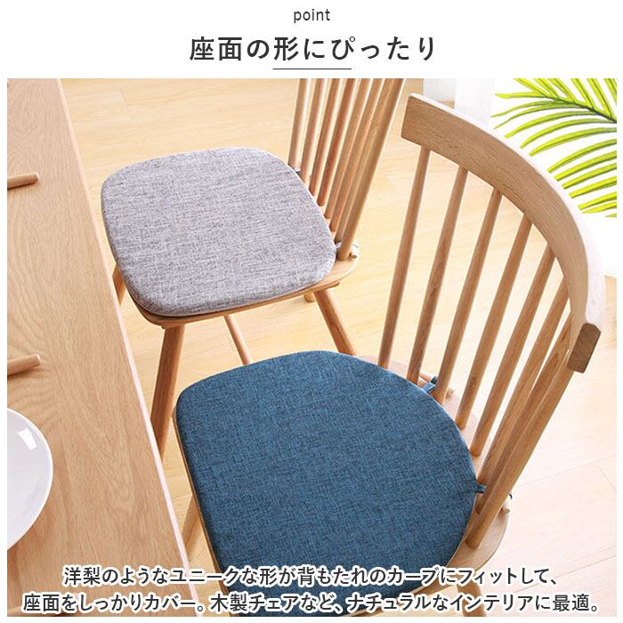 ・洋梨のようなユニークな形が背もたれのカーブにフィットして、座面をしっかりカバー。木製チェアなど、ナチュラルなインテリアに最適。
