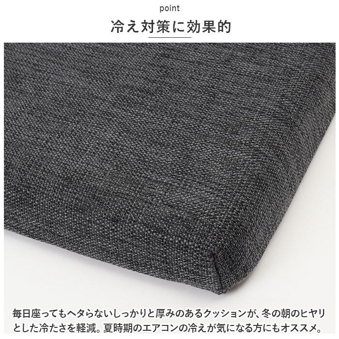 ・毎日座ってもヘタらないしっかりと厚みのあるクッションが、冬の朝のヒヤリとした冷たさを軽減。夏時期のエアコンの冷えが気になる方にもオススメ。