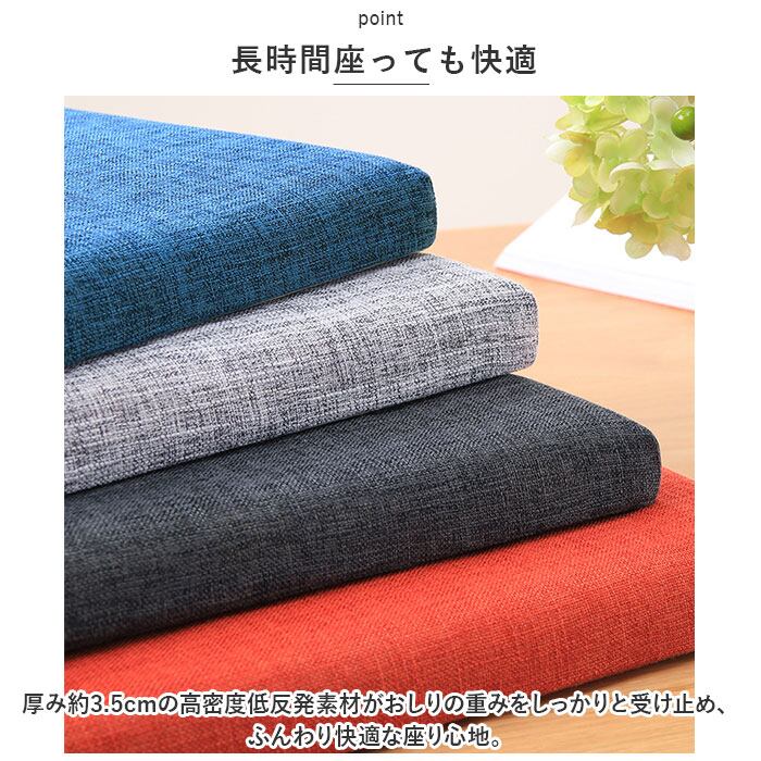 ・厚み約3.5cmの高密度低反発素材がおしりの重みをしっかりと受け止め、ふんわり快適な座り心地。