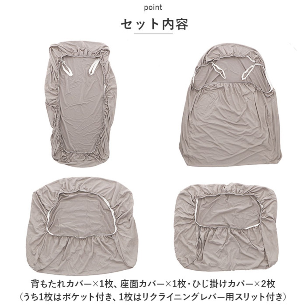 ・ひじ掛けカバー×2枚(うち1枚はポケット付き、1枚はリクライニングレバー用スリット付き)