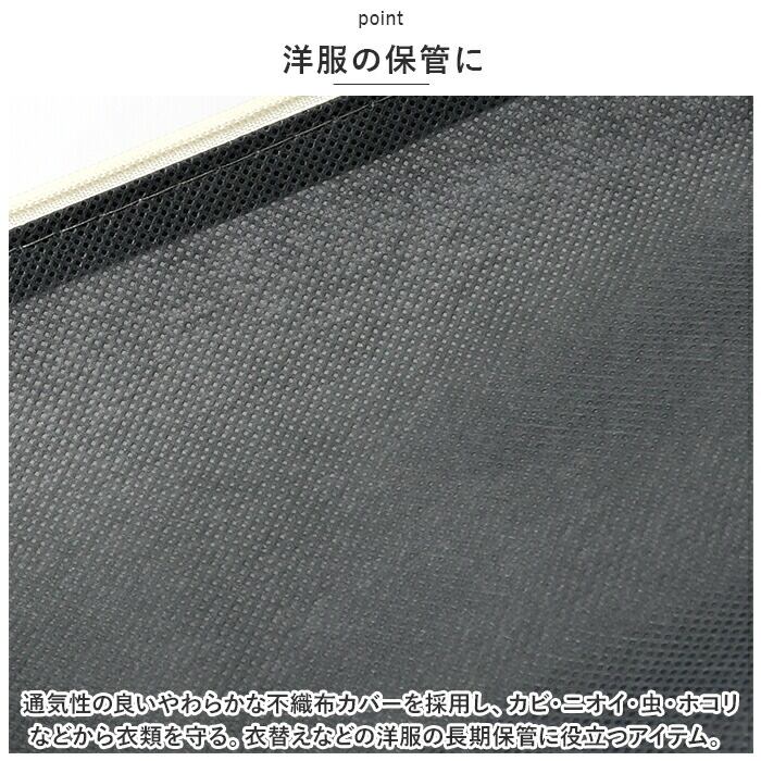 ・通気性の良いやわらかな不織布カバーを採用し、カビ・ニオイ・虫・ホコリなどから衣類を守る。衣替えなどの洋服の長期保管に役立つアイテム。