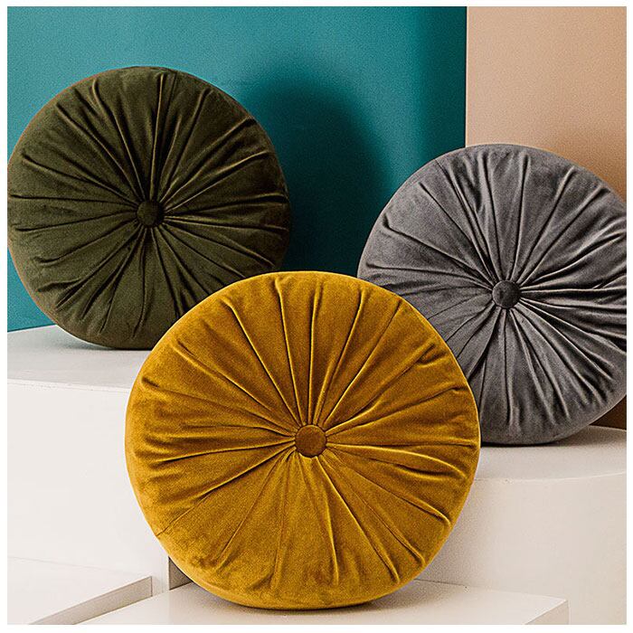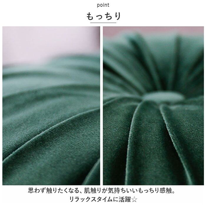 クッション かわいい おしゃれ 通販 ラウンドクッション 座布団 フロアクッション 丸型 円形 丸 ギャザー プリーツ 無地 シンプル 柔らかい ベルベット調 椅子 背もたれ ソファー ソファ 床 座る シートクッション チェアクッション 模様替え インテリア