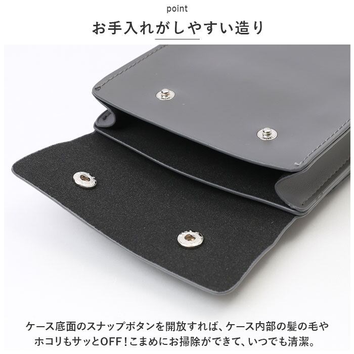 ・ケース底面のスナップボタンを開放すれば、ケース内部の髪の毛やホコリもサッとOFF!こまめにお掃除ができて、いつでも清潔。