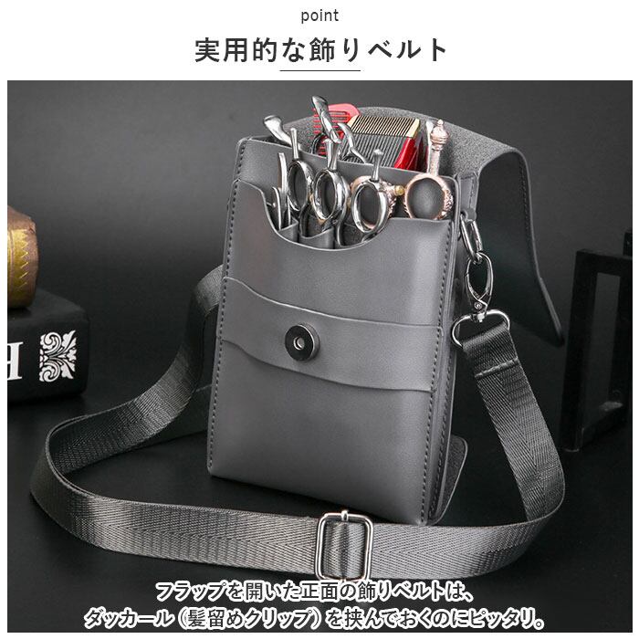・ケースの開口部にはワンタッチで開くマグネット式フラップを採用。サロンツールの飛び出しを防いで、出し入れもスムーズ。