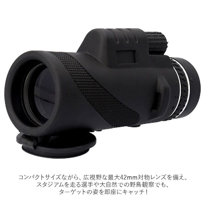 ・単眼鏡レンズには、10倍ズームBAK4光学プリズムを採用。その驚きのパワフル性能で、野生動物の表情からアスリートの姿まで、くっきりと鮮明な視界を実現!