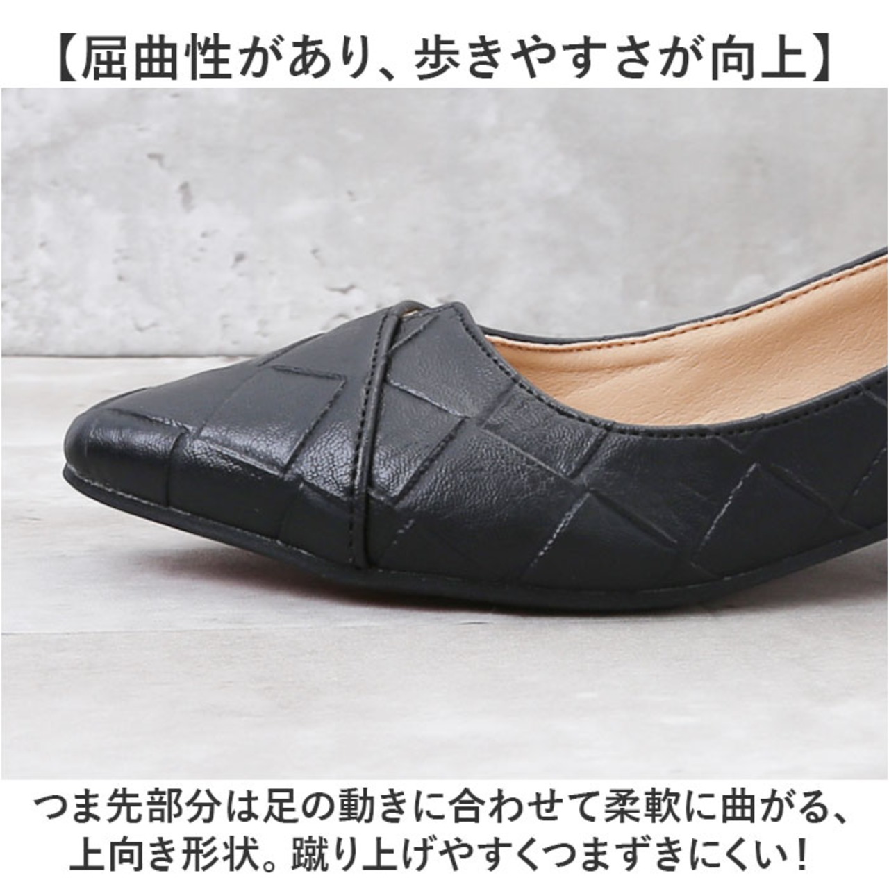 ・足が疲れにくいローヒール。少しの幅を持たせることで、安定性もキープ。