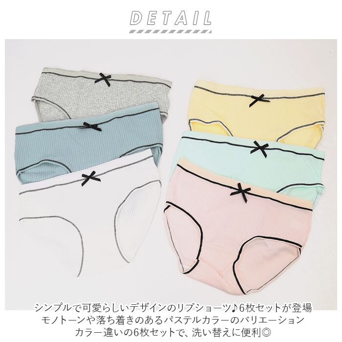・シンプルで可愛らしいデザインのリブショーツ♪6枚セットが登場。