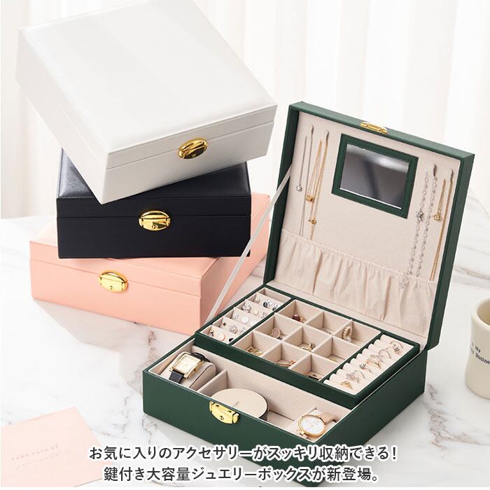 ・お気に入りのアクセサリーがスッキリ収納できる!鍵付き大容量ジュエリーボックスが新登場。