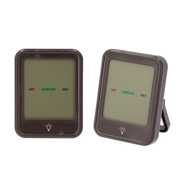 ・コンパクトな液晶画面に、上段に「湿度」、下段に「温度」を表示したシンプルなレイアウト。