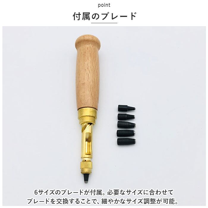 ・先端が回転するスクリュー構造で、押し込む力によって作動。繊細なレザークラフトもスムーズに行うことが可能に。