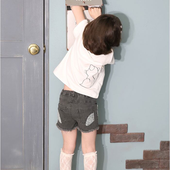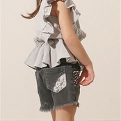 ・バックポケットまわりのイミテーションパール&後ろのレースが乙女心をくすぐる♪