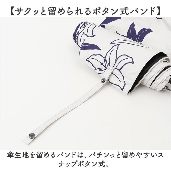 ・傘生地を留めるバンドは、バチンっと留めやすいスナップボタン式。