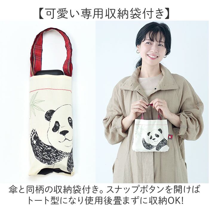 ・傘と同柄の収納袋付き。スナップボタンを開けばトート型になり使用後畳まずに収納OK!