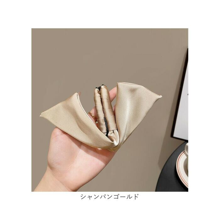 ・落ち着きカラーとサテン生地で大人の魅力をUP!オフィスも休日も大活躍のヘアアクセ。