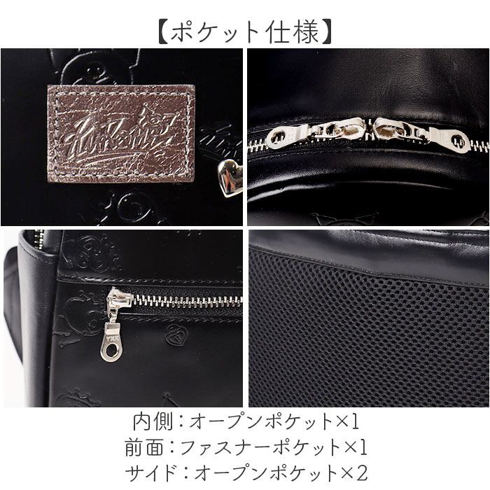 ・表面は落ち着きのある牛革素材。キャラクターを型押しで表現、タグやワンポイント金具をON♪
