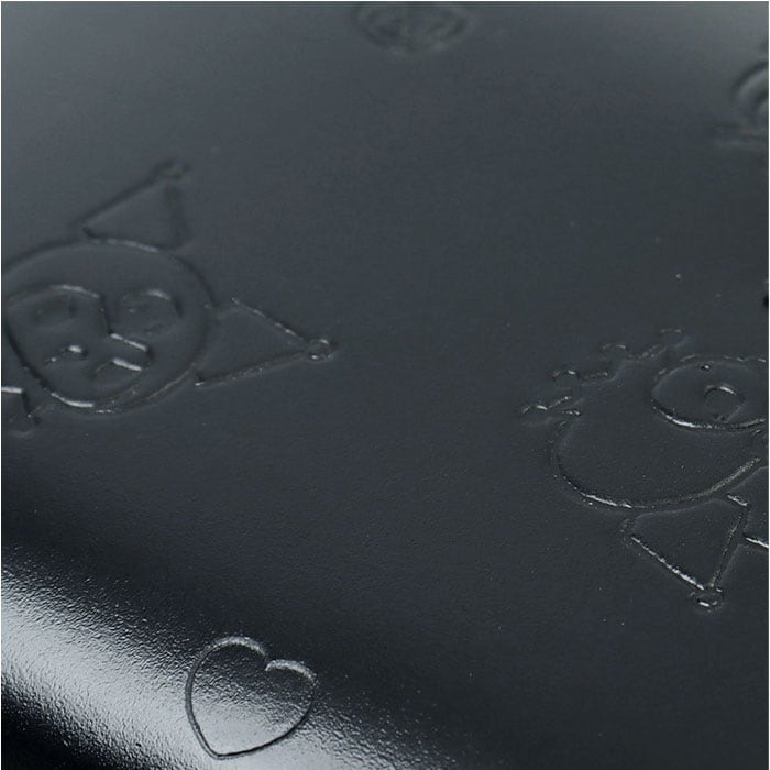 ・ワンカラーの本革にキャラクターモチーフのエンボス加工で派手過ぎず大人でも持てる上品さ