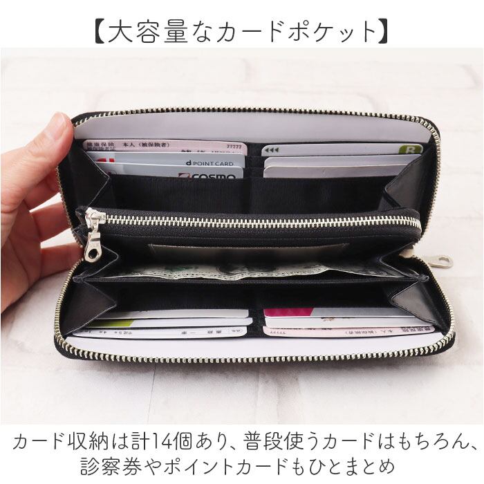 ・カード収納は計14個あり、普段使うカードはもちろん、診察券やポイントカードもひとまとめ