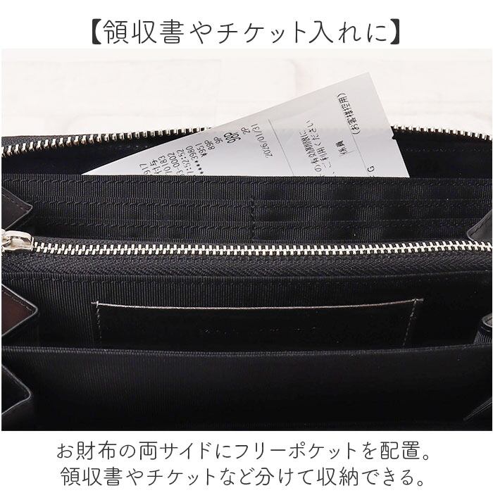 ・お財布の両サイドにフリーポケットを配置。領収書やチケットなど分けて収納できる。