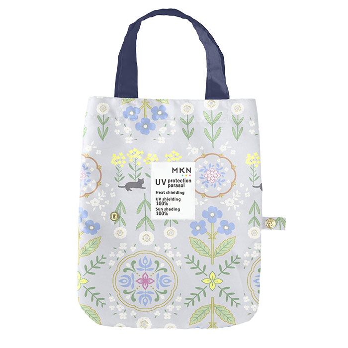 ・傘と同柄の収納袋付き。スナップボタンを開けばトート型になり使用後畳まずに収納OK!