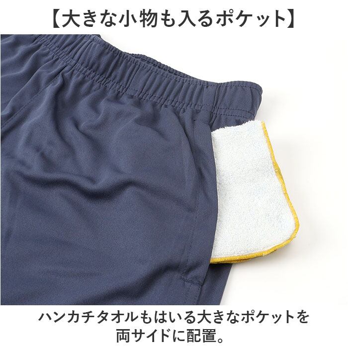 ・ハンカチタオルもはいる大きなポケットを両サイドに配置。