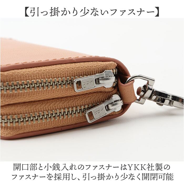 ・開口部と小銭入れのファスナーはYKK社製のファスナーを採用し、引っ掛かり少なく開閉可能