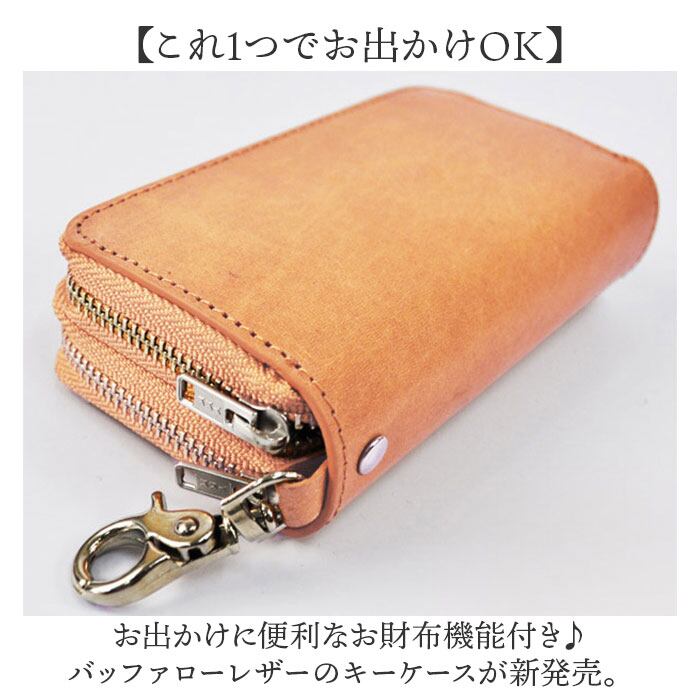 ・お出かけに便利なお財布機能付き♪バッファローレザーのキーケースが新発売。