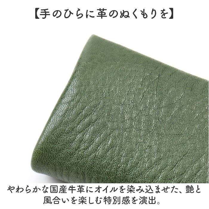 ・やわらかな国産牛革にオイルを染み込ませた、艶と風合いを楽しむ特別感を演出。