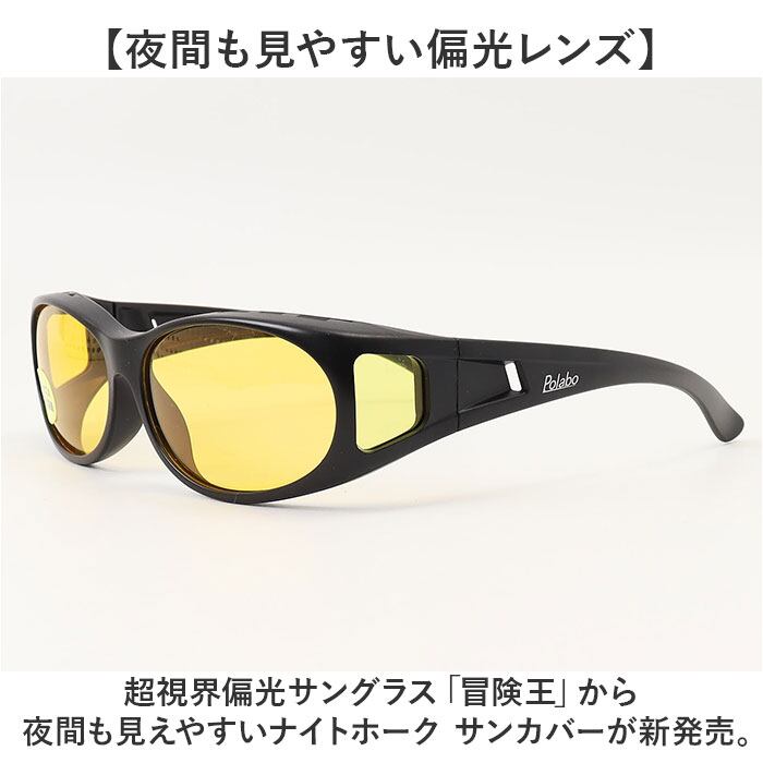 冒険王 サングラス 偏光 通販 偏光グラス ナイトホーク サンカバー 偏光サングラス オーバーグラス 眼鏡 めがね メガネ メガネの上から 偏光機能付き UVカット メガネの上から掛けられる メガネの上から装着 夜間 メンズ レディース 釣り ドライブ 運転 車